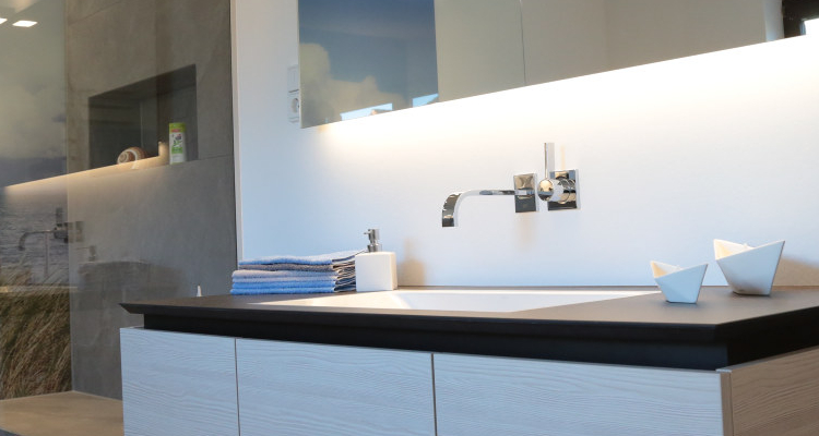 Ihre Wellness-Oase im Badezimmer. Funktionale Schränke mit dem passenden Stauraum, Steckdosen am richtigen Platz und angenehm-funktionaler Beleuchtung. Für den klaren Blick sorgt der beheizbare Spiegel!