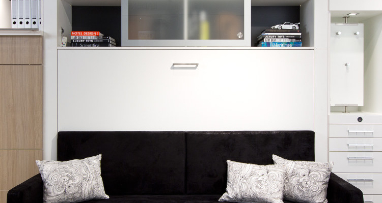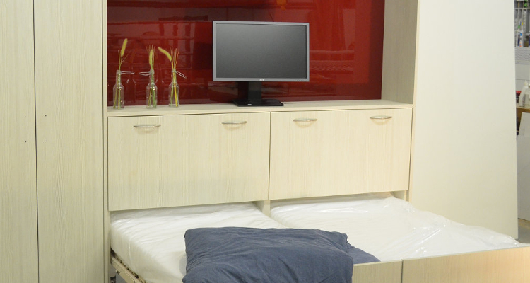 Nutzen Sie Ihre Räume doppelt – tagsüber schön wohnen, nachts gut schlafen auf komfortabler Matratze und Lattenrost. Tagsüber verstecken Sie Bett und Bettzeug im belüfteten Schrank.