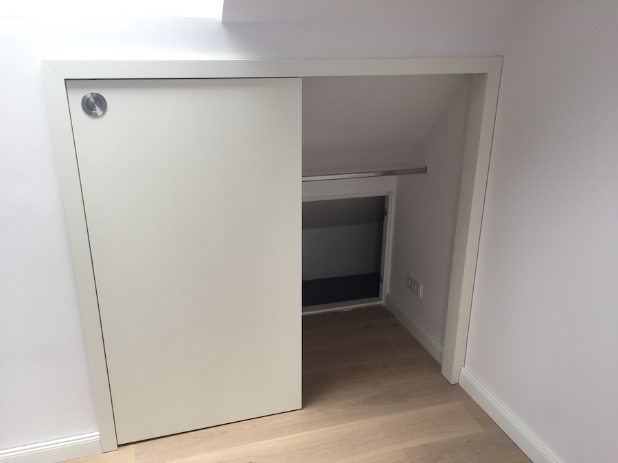 Sie bekommen mit individuell für Sie gefertigten Schiebetüren und Schwebetüren die passende Lösung. Verwenden Sie großflächige Schiebetüren zur flexiblen Aufteilung Ihrer Räume. In Ihrem Wohnzimmer haben Sie einen Bereich für Ihr Hobby oder ein home office? Verstecken Sie diesen bei Bedarf, zum Beispiel, wenn Sie Besuch erwarten, mit einer Schwebetür. Sie haben eine Dachschräge und würden den Stauraum im „Drempel“ gerne nutzen? Nutzen Sie eine Schiebetür für eine saubere Optik und praktischen Zugang zu Ihrem Stauraum. Sie wünschen sich eine platzsparende Zimmertür? Entscheiden Sie sich für eine Schwebetür. Sie hätten gerne Stauraum hinter Ihrem Regal? Bei uns bekommen Sie ein Regal als Schiebetür, so nutzen Sie den Stauraum dahinter!